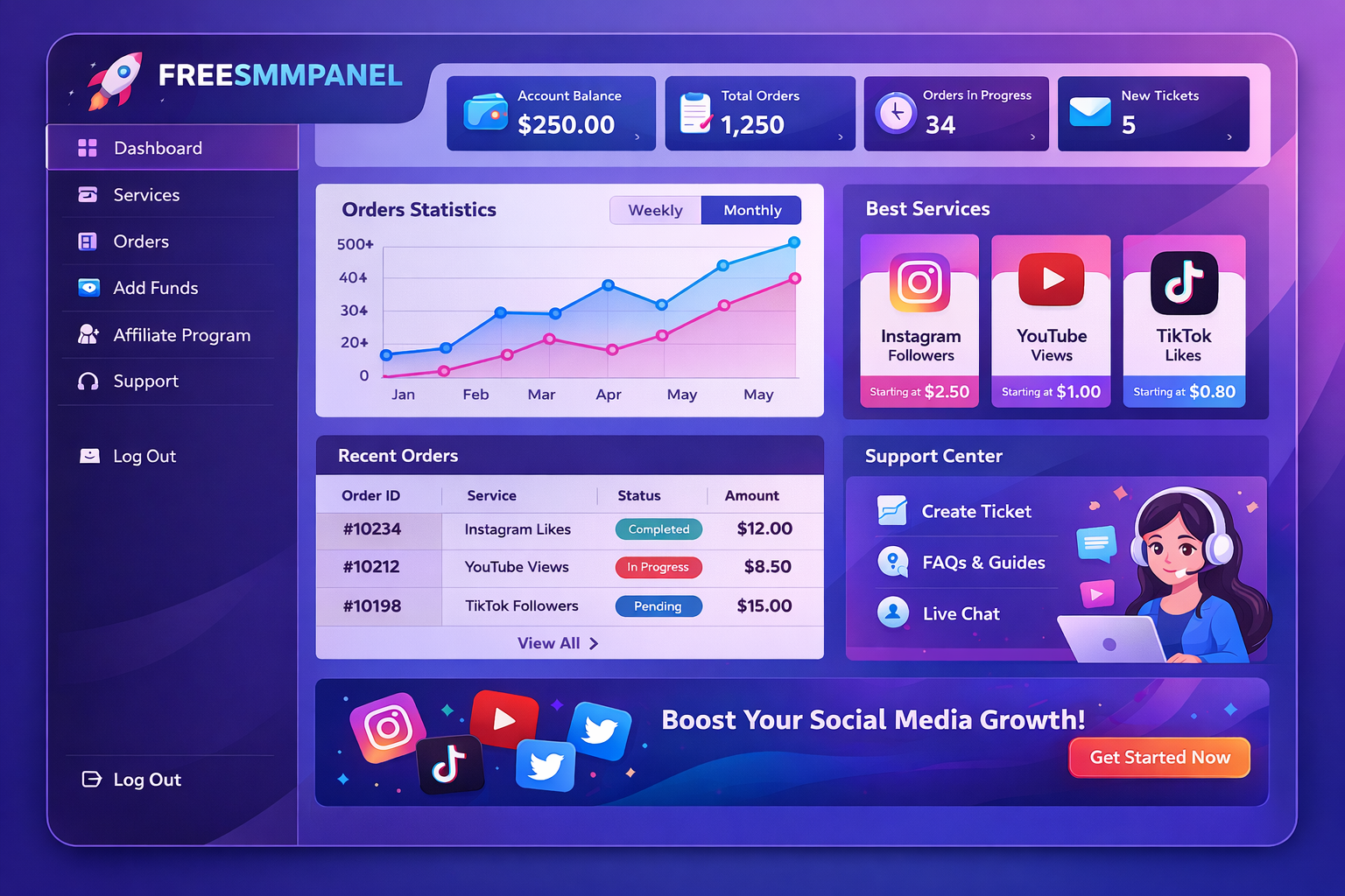 Easily add funds to your account and start boosting your social media services instantly.